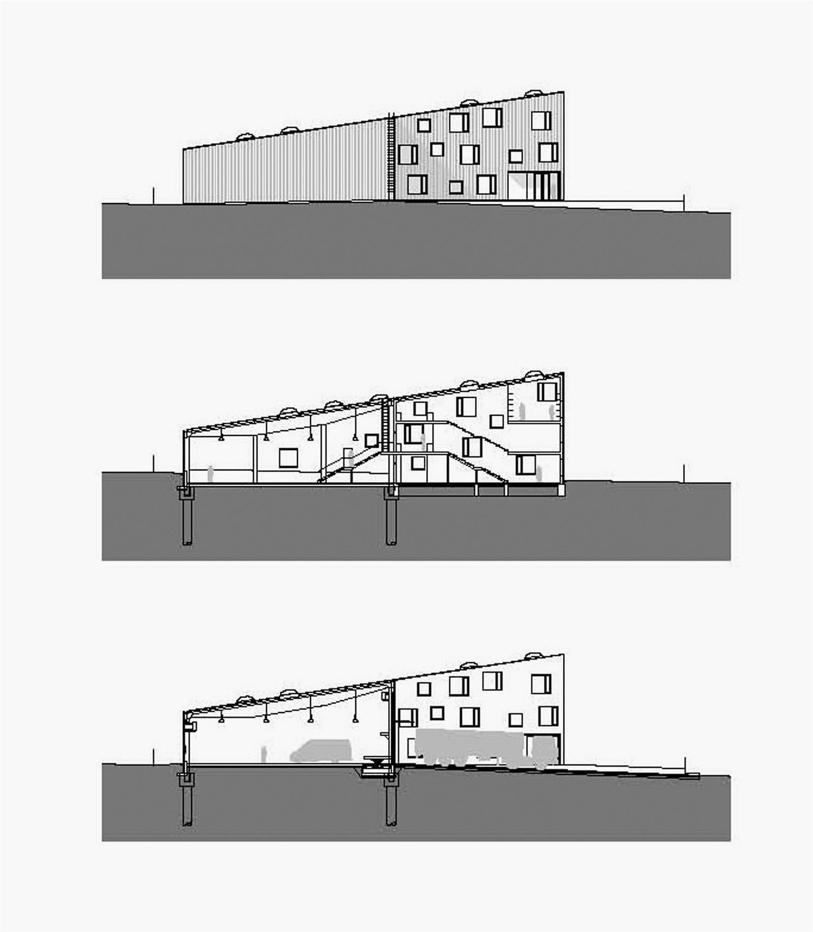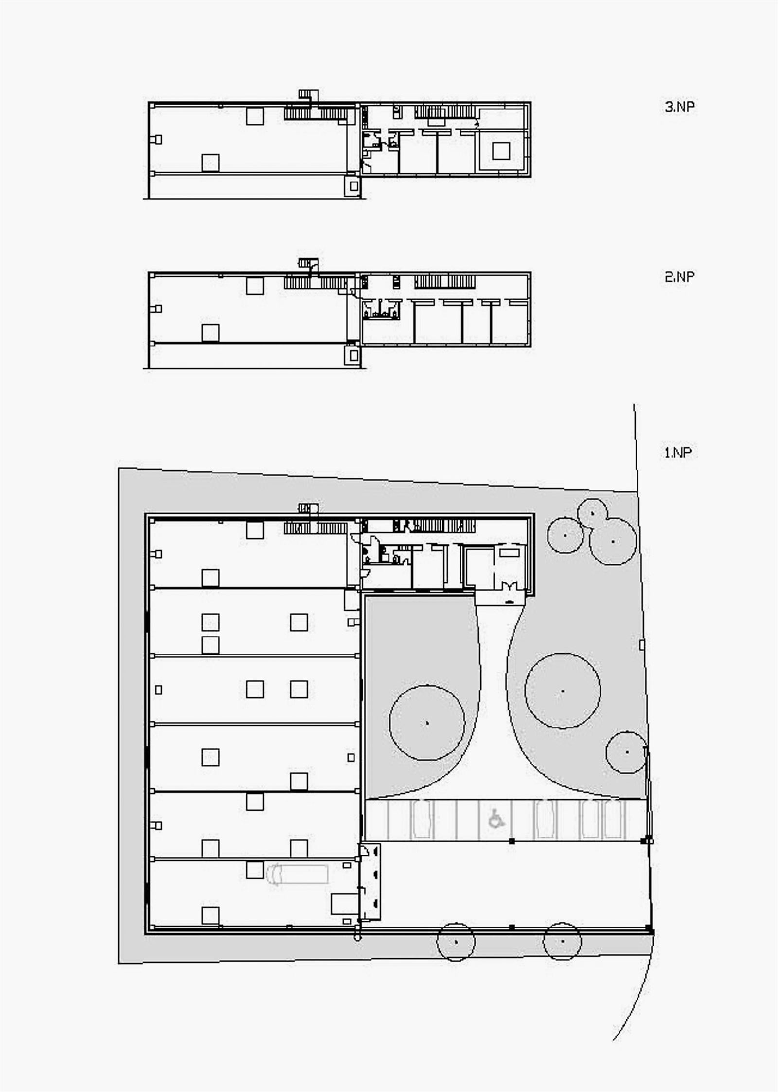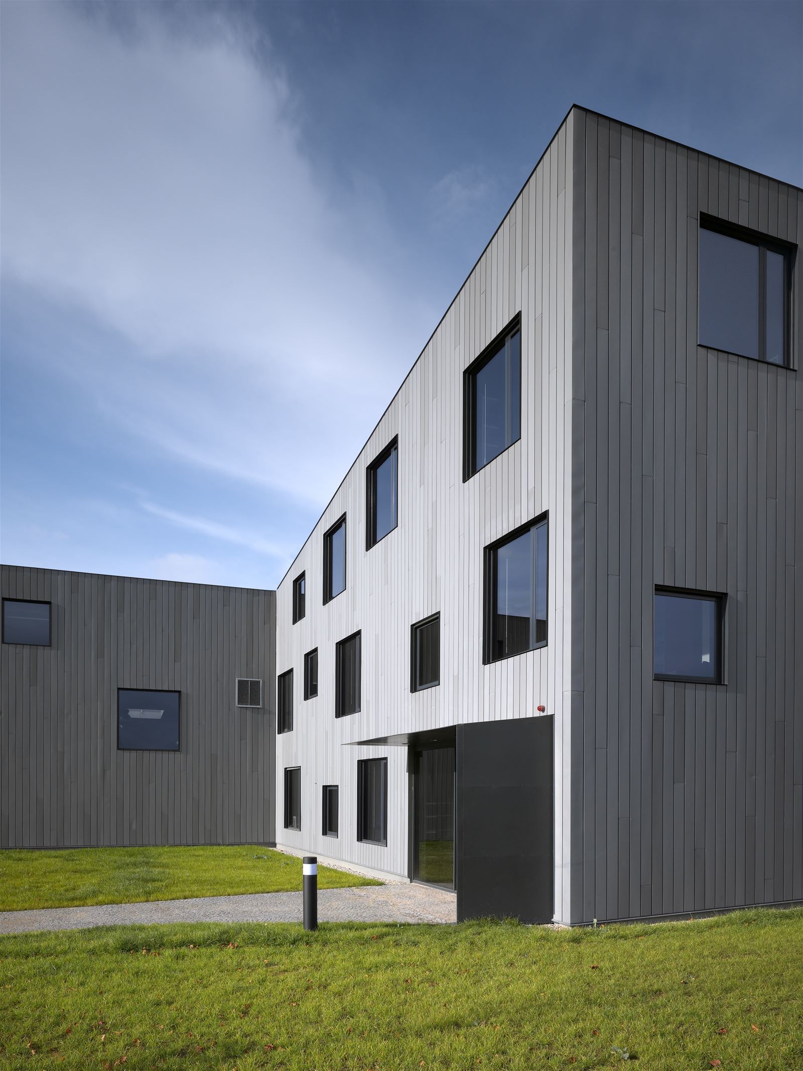 Záměrně jsme proto rezignovali na vazbu k okolní zástavbě a vytvořili kompaktní, uzavřený celek, který se od neutěšeného okolí odvrací a směruje pozornost dovnitř, k sobě samému, k lidem, kteří v něm pracují.