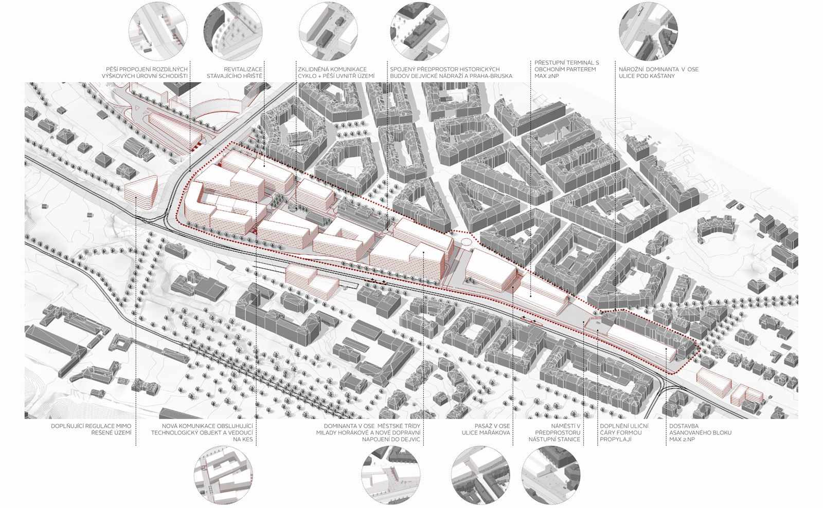 Návrh nového urbanistické řešení slouží jako podklad ke změně Územního plánu i ke koordinaci záměrů v území a zohledňuje návaznost na připravované projekty železnice Praha – Letiště Václava Havla – Kladno (Metropojekt), dále "KES" – Komunikace Evropská – Svatovítská (MČ Praha 6, PUDIS) a výstavbu na ploše bývalého kolejiště stanice Praha–Bruska.