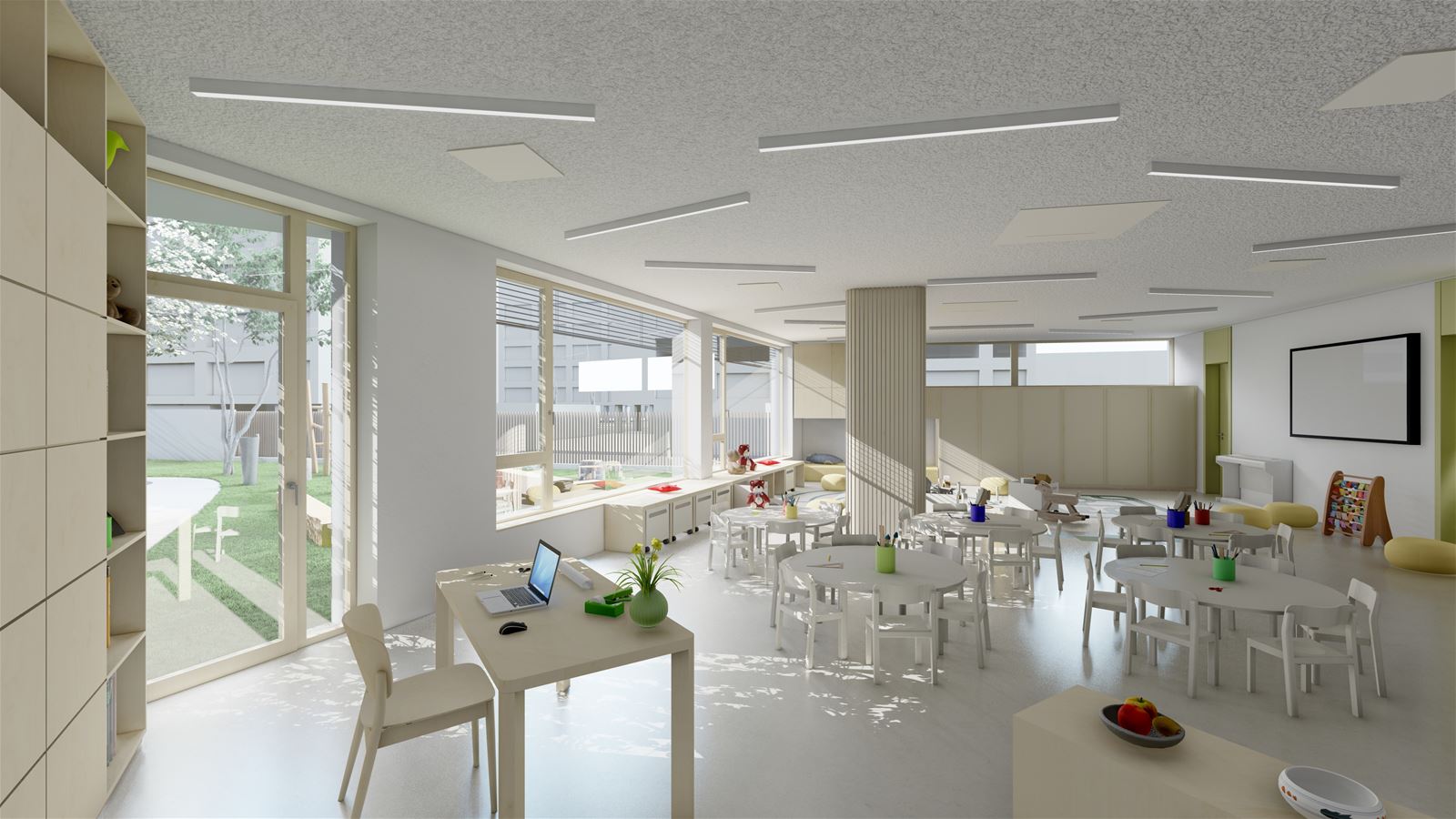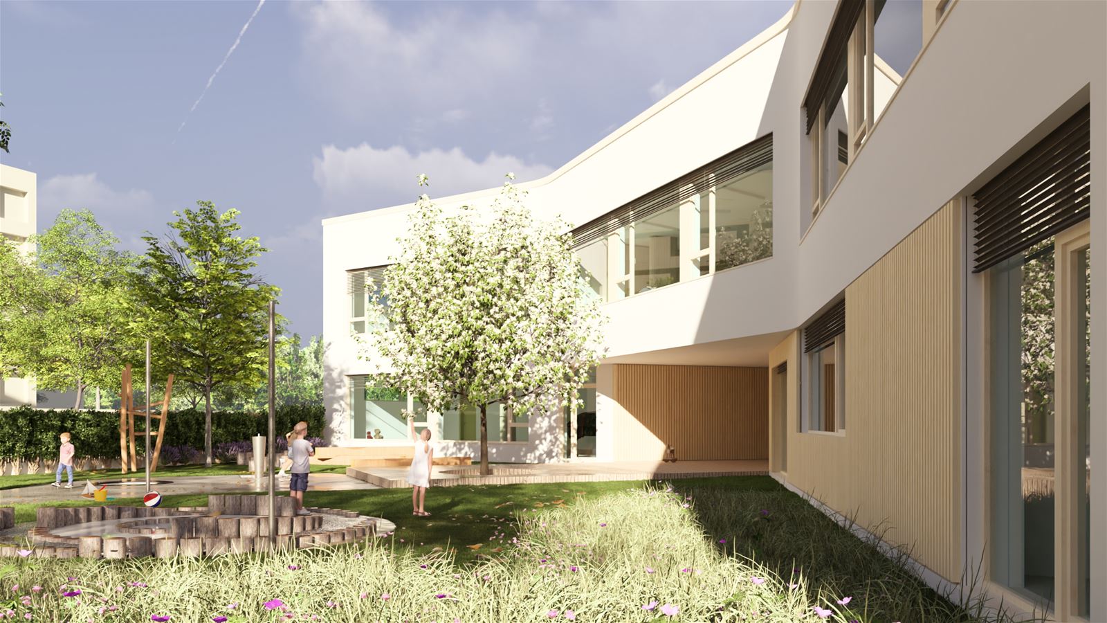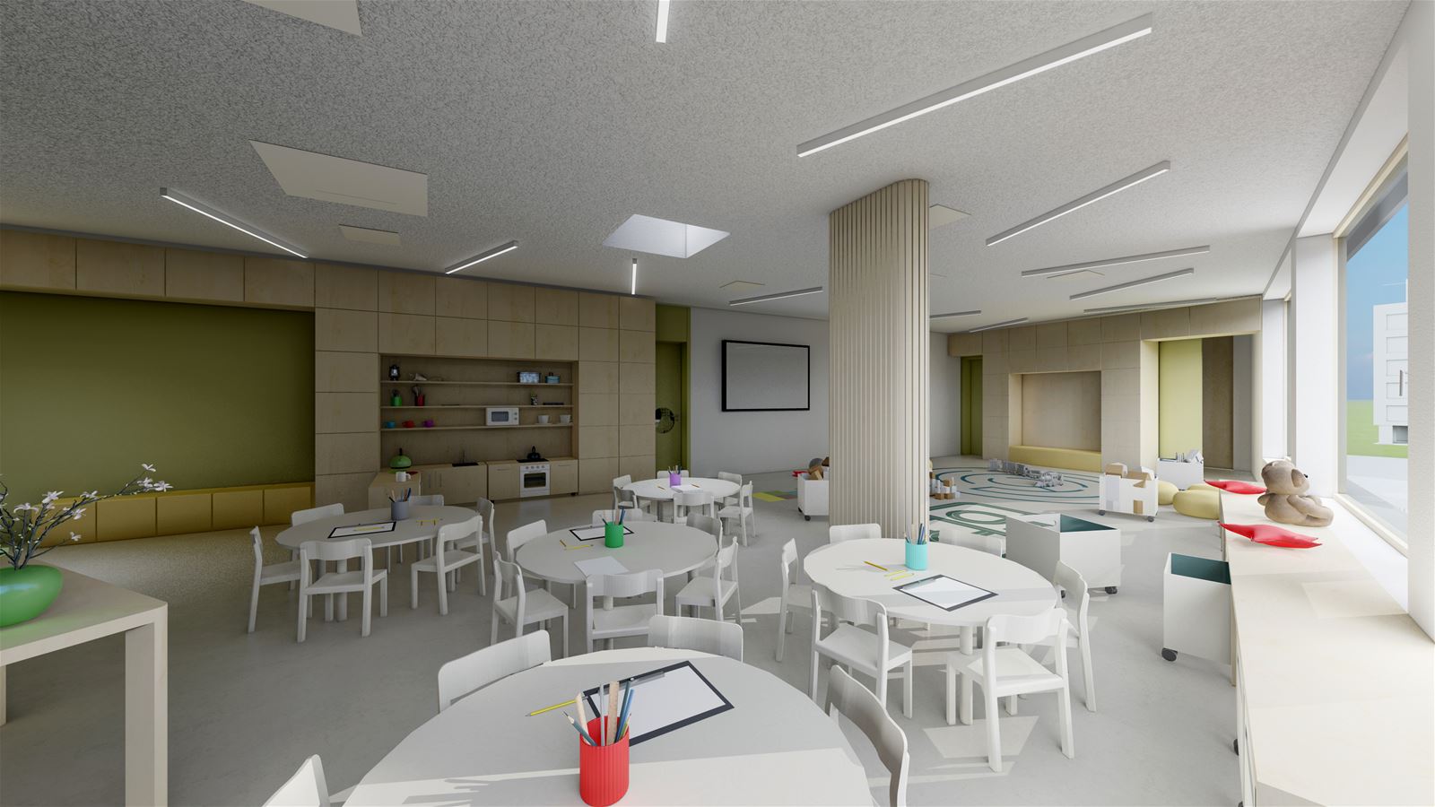Mateřské školy Aero v Kralupech nad Vltavou vzniká v centru města jako součást vybavenosti nové obytné čtvrti. Kdysi průmyslová lokalita v bezprostřední blízkosti řeky a dopravní tepny vlakového nádraží se postupně proměnuje v moderní rezidenční bydlení se zeleni, ale také s tolik potřebnými službami. Školka, vyroste v severovýchodní části řešeného území a bude vymezena ulicemi Trojanova a Libušina. Do jejího názvu se promítla stopa historie, kdy tu původně stál lihovar a továrna na letecké motory Aero.