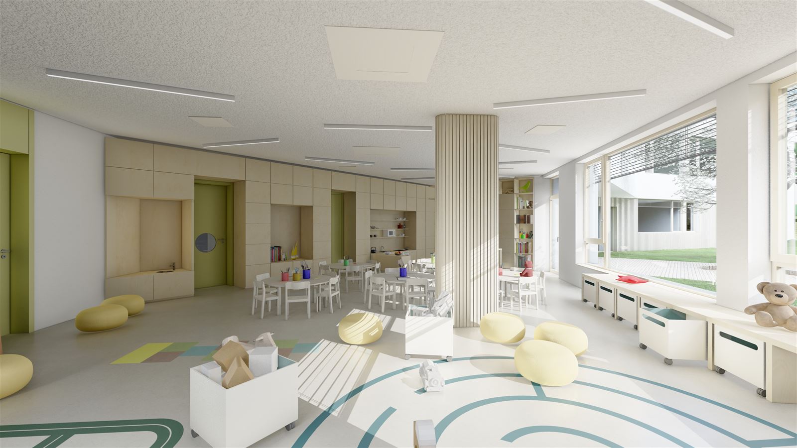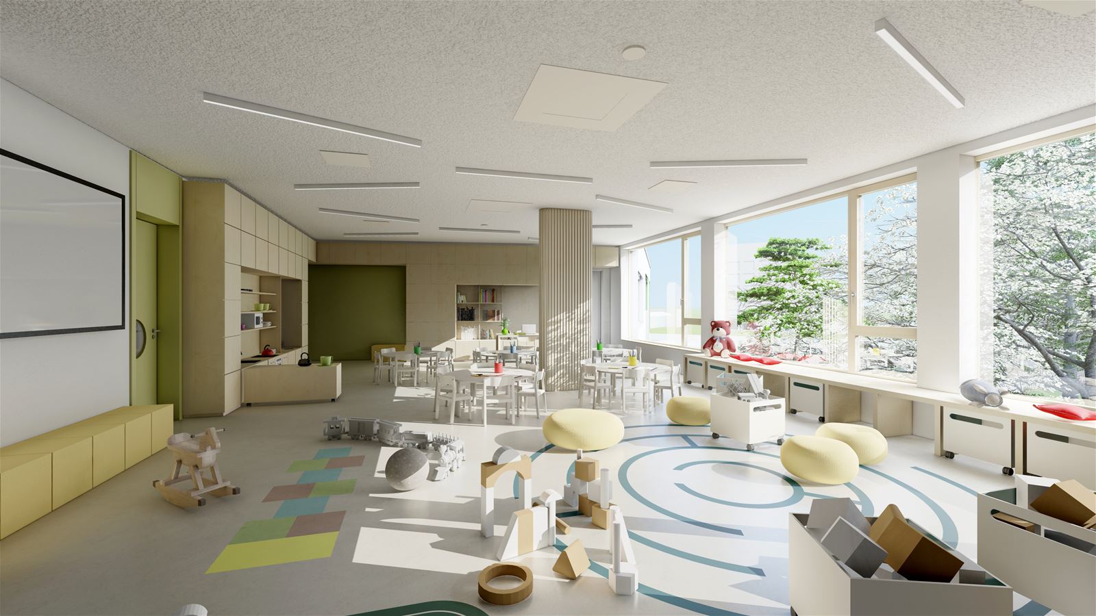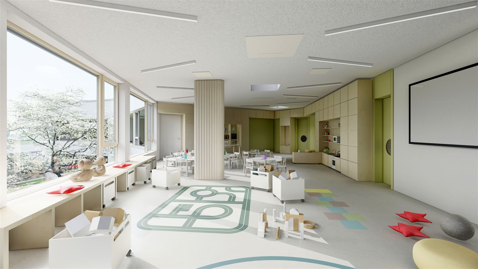 Mateřské školy Aero v Kralupech nad Vltavou vzniká v centru města jako součást vybavenosti nové obytné čtvrti. Kdysi průmyslová lokalita v bezprostřední blízkosti řeky a dopravní tepny vlakového nádraží se postupně proměnuje v moderní rezidenční bydlení se zeleni, ale také s tolik potřebnými službami. Školka, vyroste v severovýchodní části řešeného území a bude vymezena ulicemi Trojanova a Libušina. Do jejího názvu se promítla stopa historie, kdy tu původně stál lihovar a továrna na letecké motory Aero.