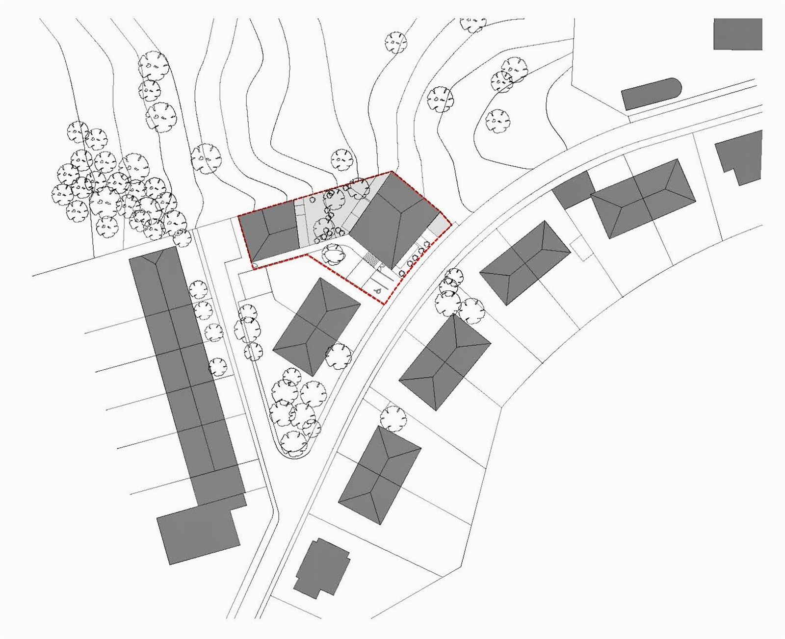 Vstup do objektu je koncipován jako poloveřejné patio, přirozený přechod mezi veřejným a soukromým světem, prostor pro setkávání i odpočinek.