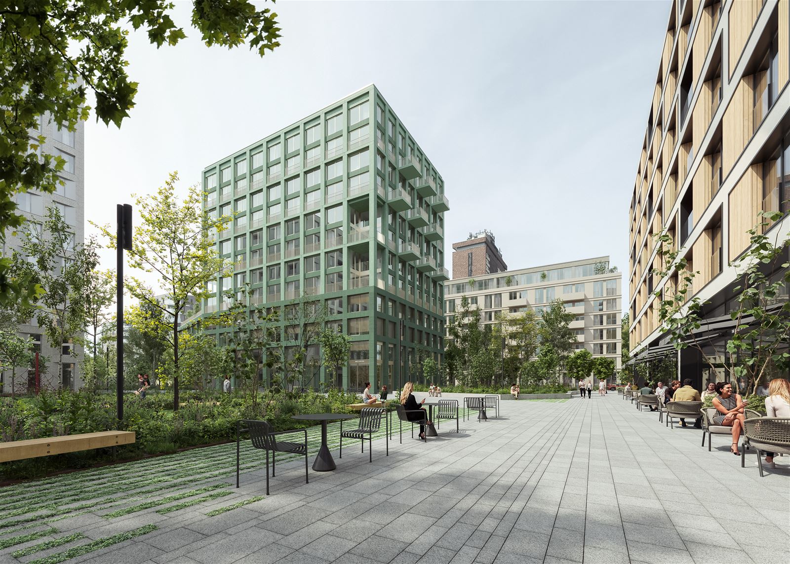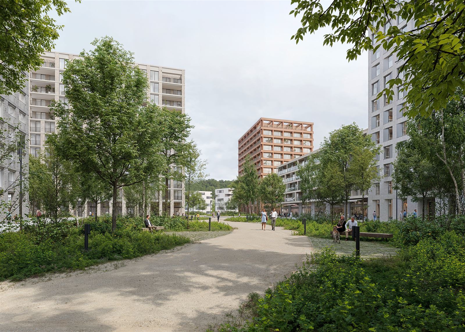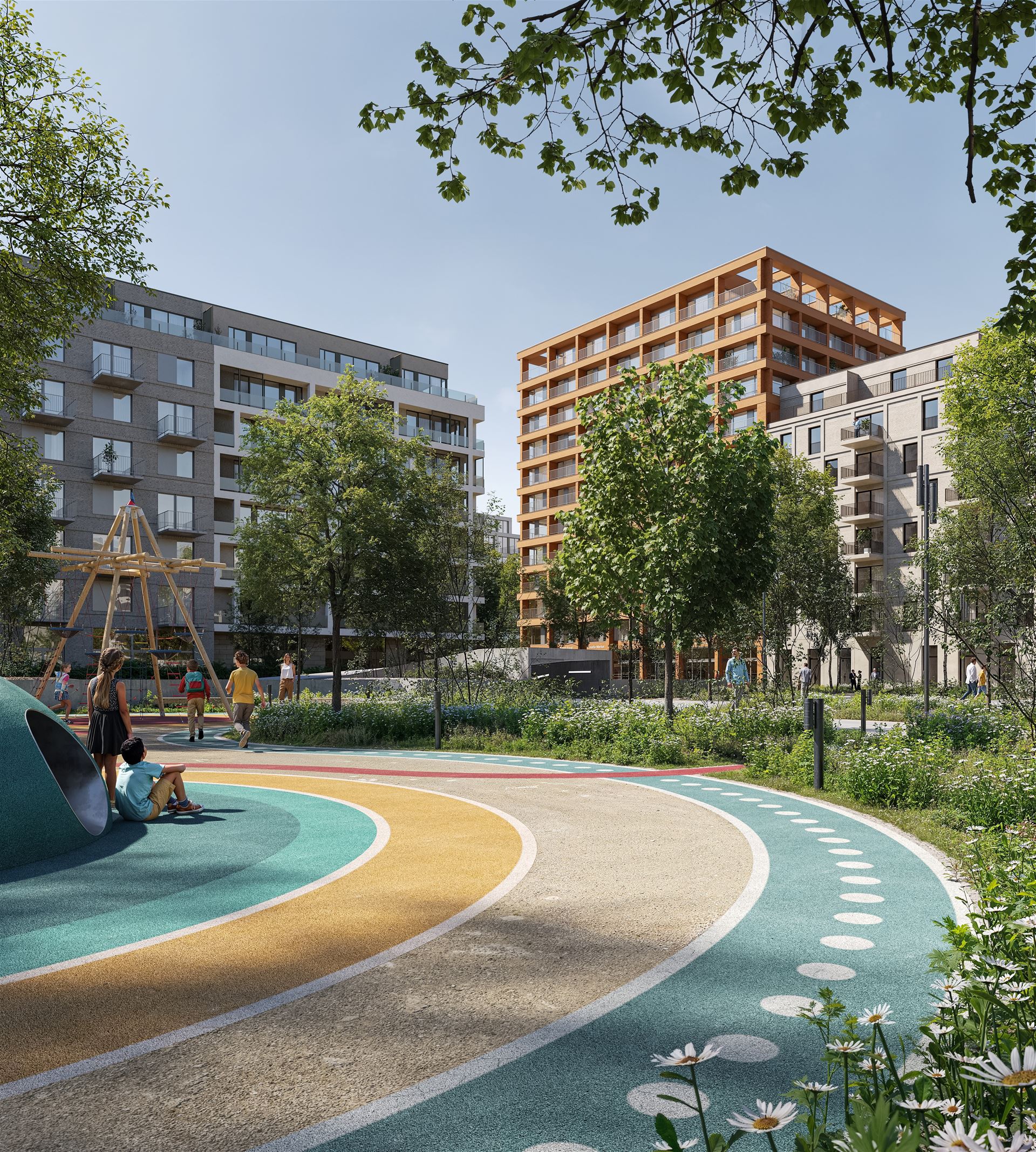 Krajinářský koncept spočívá ve využití navržené koncepce veřejných prostranství a jejich hierarchie pro pojmenování principů řešení zeleně. Výsadby a materiálové řešení veřejných prostranství jsou sjednoceny pomocí systému zelených ostrovů. Ty se v úrovni chodníku rozprostírají celým územím, zlepšují mikroklima, podporují vsakování a zadržování dešťové vody (v souladu s principy HDV) a zároveň vytvářejí pestrou škálu pobytových míst, od vymezených kruhových louček mezi keři s možností sezení, až po výraznější stromové celky s trávníky a rekreační využití. Intimnější zákoutí jsou přístupná šlapáky v trávě nebo parkovými cestami. Ve veřejném prostoru je kladen důraz na přehlednost, prostupnost a přirozenou sociální kontrolu. Doplňkově jsou použity klasické prvky jako alej či bosket, a to zejména pro formální veřejná prostranství jako je vstupní náměstí či ulice.